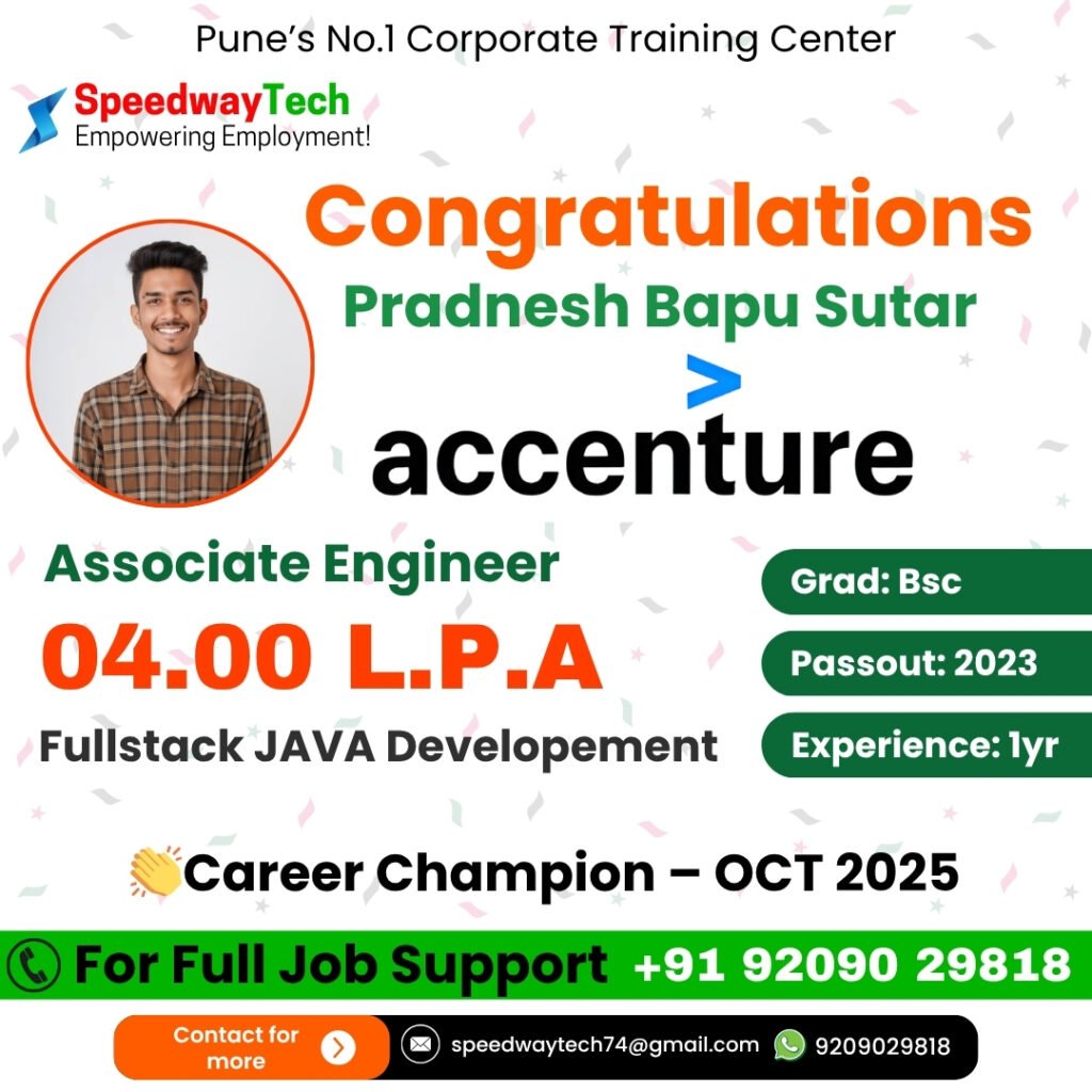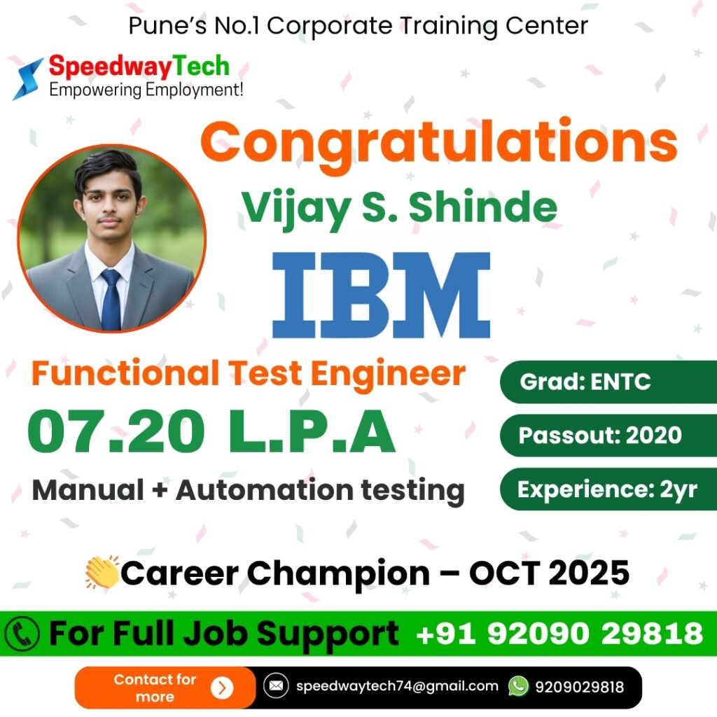 EXCELLENT Based on 173 reviews Arjun Tak2025-01-20Trustindex verifies that the original source of the review is Google. Perfect platform to start your career in Testing (Automation+ Manual) and IT field. Naman Srivastava2025-01-20Trustindex verifies that the original source of the review is Google. Situated in Nanded City, Speedway Tech has High-class facility and highly experienced trainers. The guidance and real-time experience of trainers helps immensely to get into IT sector. Highly recommended to candidates who are looking to get certified in Manual and Automation Software Testing. sumeeth hadole2025-01-20Trustindex verifies that the original source of the review is Google. The instructor was excellent. He was extremely knowledgeable, willing to help any student at anytime, with any questions. He was an expert and was very clear in his method of teaching. All my questions were answered and the class interaction was very good. Pooja Patil2025-01-17Trustindex verifies that the original source of the review is Google. Sujit sir teaching is very excellent... They focus on practical knowledge...they teach each & every points with real time examples... environment is good...they also help to students for preparing interview,they conduct mock sessions .Currently I am learning in Speedway Tech And it is best platform for me to learn and place in good company . swati sayare2025-01-17Trustindex verifies that the original source of the review is Google. Currently I am learning in Speedway Tech And it is very easy for me to adopt testing knowledge without facing any challenges it is best platform for me to learn and place in good company all teaching staff are very helpful they are always available to solve your query And gave deep knowledge of testing all is need to your hardwork Tanvi Tanksale2025-01-17Trustindex verifies that the original source of the review is Google. Best Training Institute...Great platform for learning software testing and building your confidence in IT sector. Rajesh Ghodke2025-01-17Trustindex verifies that the original source of the review is Google. SpeedwayTech is very nice institute And teaching quality is great And they gives us very positive response from speedwayTech teem... Thanks.. Sam Kamble2025-01-17Trustindex verifies that the original source of the review is Google. A Speedway IT class offers a fast-paced, hands-on learning experience in cutting-edge technology and software development. The curriculum focuses on practical skills, guided by knowledgeable instructors, making it ideal for tech enthusiasts. While intensive, it's highly rewarding for those eager to advance quickly in IT. Swapnaja Patne2024-10-18Trustindex verifies that the original source of the review is Google. "I am beyond grateful to Sujeet Sir, SpeedwayTech Institute, and all my friends for your unwavering support throughout my learning journey. Thanks to your expert guidance and encouragement, I am thrilled to share that I’ve received an offer from Accenture! This achievement wouldn’t have been possible without the high-quality training and the motivational environment at SpeedwayTech. Thank you SpeedwayTech for all the support, guidance, motivation, and incredible teaching. I feel more confident and excited to embark on this new chapter in my career. Thank you for being an integral part of my success!" Sarika Nimburge2024-07-11Trustindex verifies that the original source of the review is Google. Number one class
